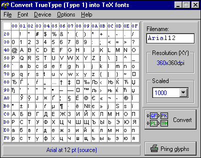 обрабатываемого шрифта, что позволяет, например, приводить русские TrueType